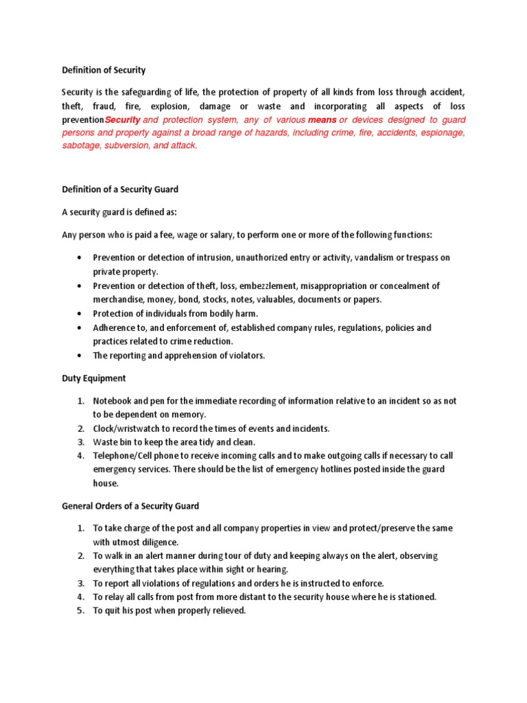 1. To take charge of the post and all company properties in view and protect/preserve the same