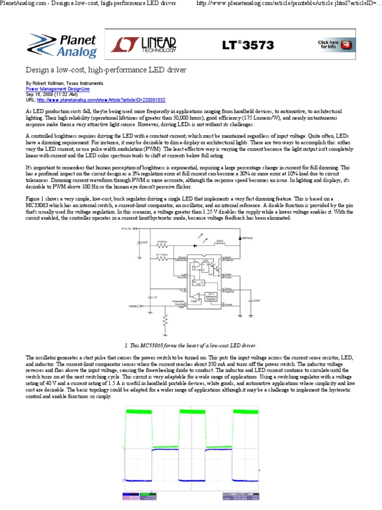 PlanetAnalog.com - Design a low-cost, high-performance LED driver http://www.planetanalog.com/article/printableArticle.jhtml?articleID=...