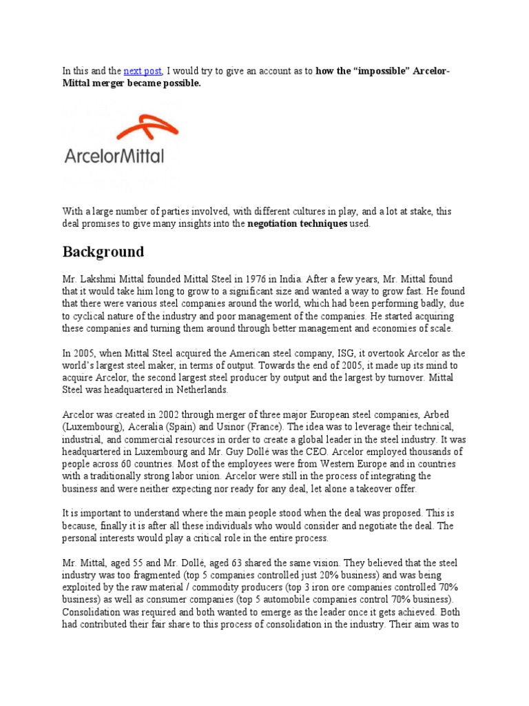 Mittal, was of the view that there were a large number of synergies between the two companies –