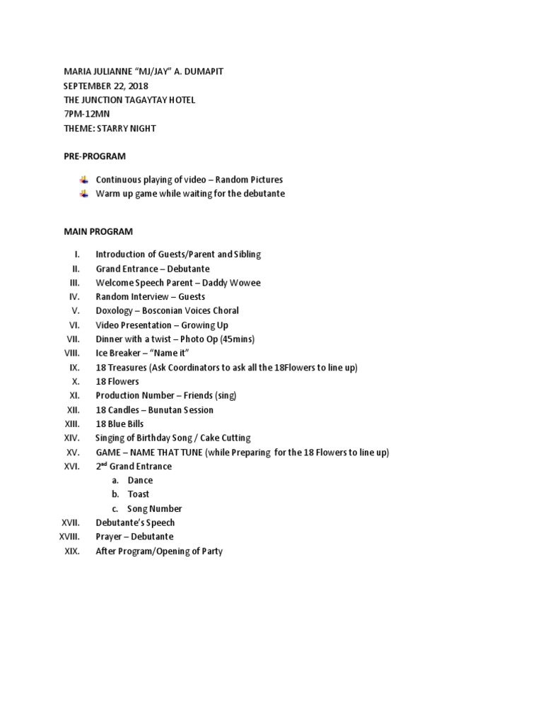 IX. 18 Treasures (Ask Coordinators to ask all the 18Flowers to line up)