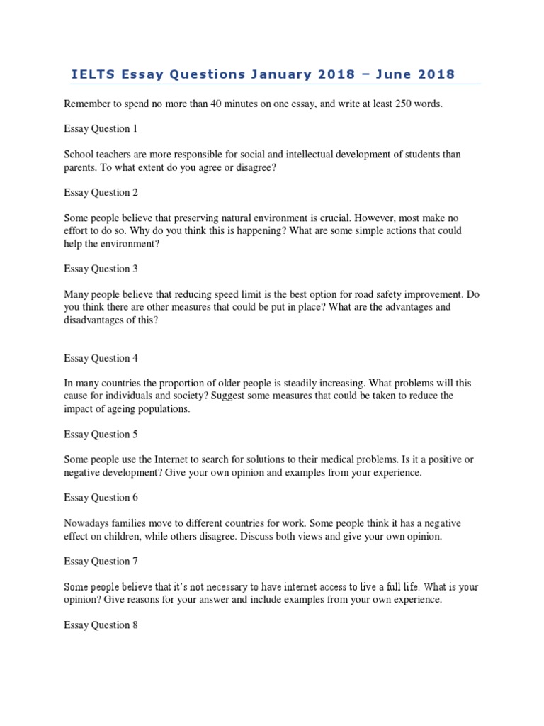 IELTS Es say Que stions Janu ary 2018 – June 2018