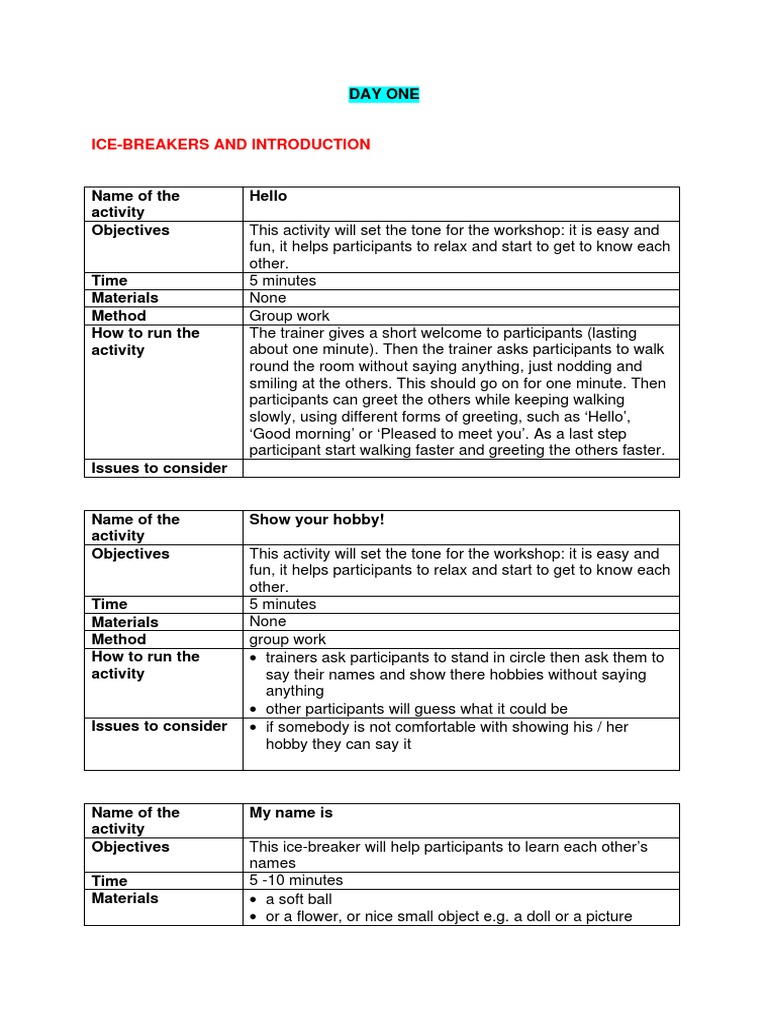 Objectives This ice-breaker will help participants to learn each other’s