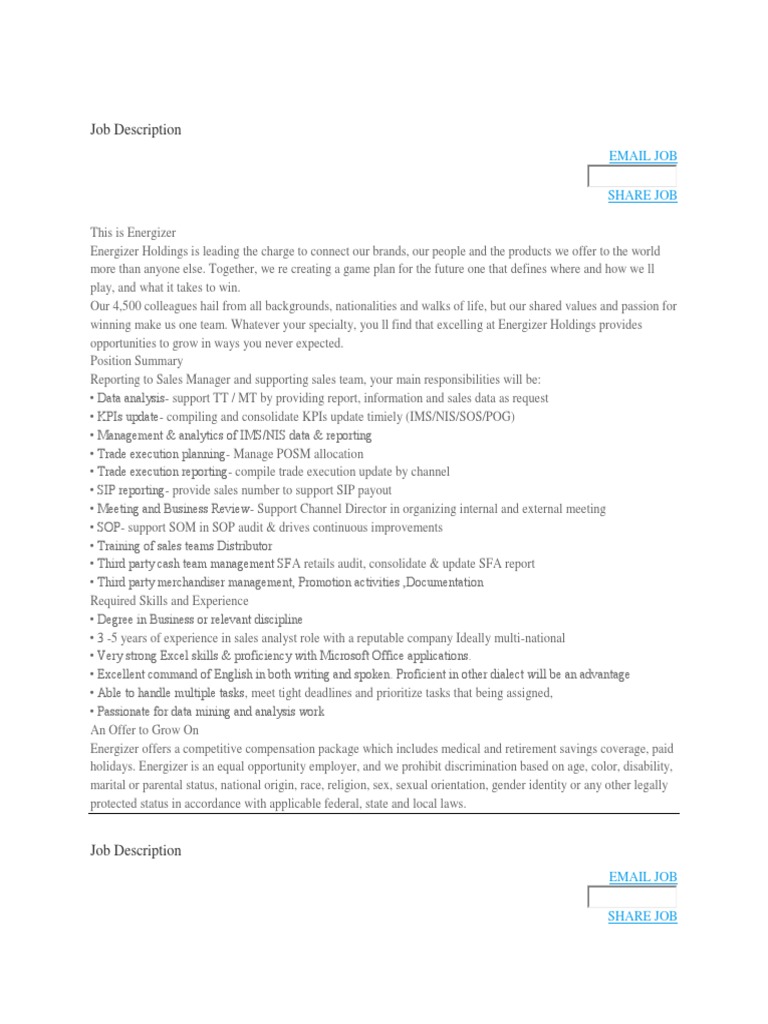 • 3 -5 years of experience in sales analyst role with a reputable company Ideally multi-national