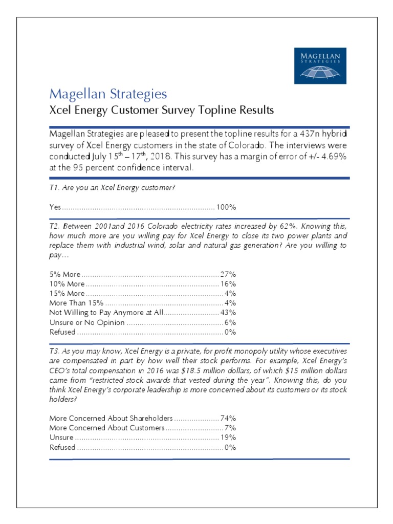 Colorado Xcel Energy Customer Survey Topline Results 072618 - T10-T12