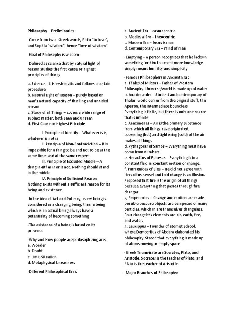 Philosophy – Preliminaries a.