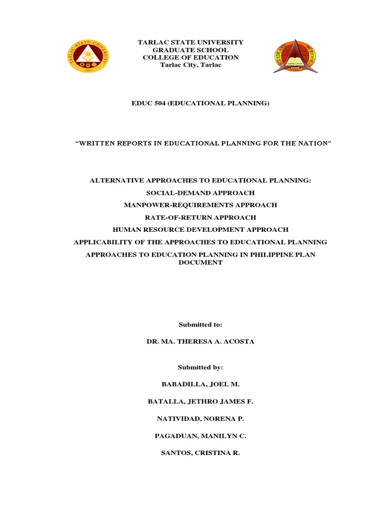 “WRITTEN REPORTS IN EDUCATIONAL PLANNING FOR THE NATION”