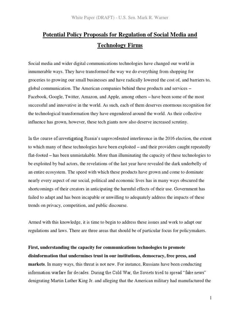 White Paper (DRAFT) - U.S. Sen. Mark R. Warner