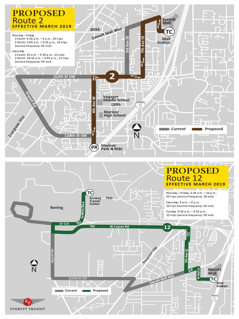 Monday - Friday2 South: 6:30 a.m. – 8 p.m., 19 trips 2 North: 6:45 a.m. – 8:15 p.m., 19 trips (service frequency: 45 min)Saturday2 South: 10 a.m. – 5:30 p.m., 11 trips2 North: 10:15 a.m. – 5:45 p.m., 11 trips(service frequency: 45 min)