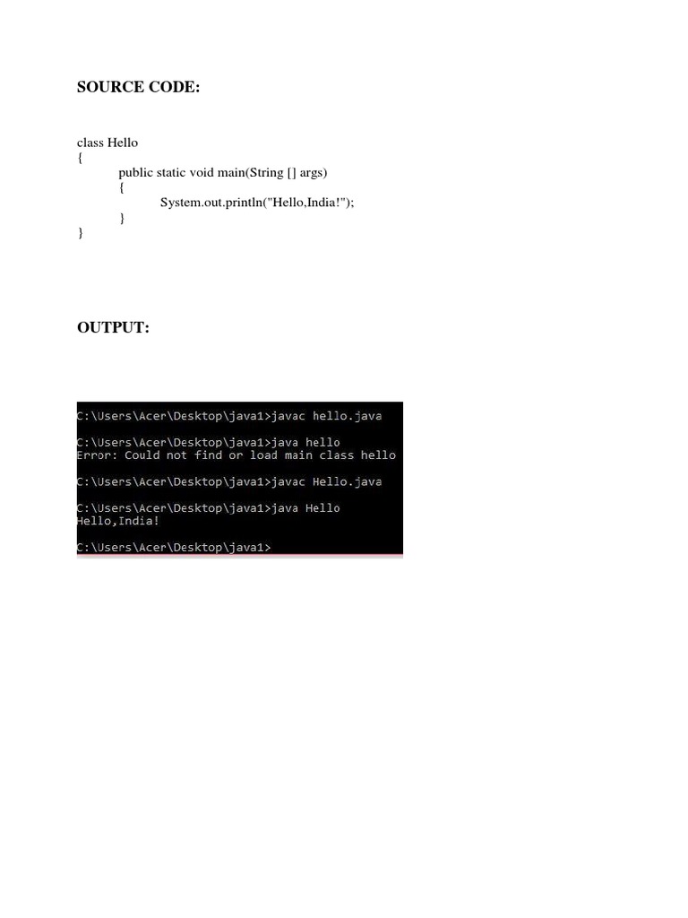 Source Code:: Class Hello (Public Static Void Main (String Args) (System - Out.println ("Hello, India!") ) )