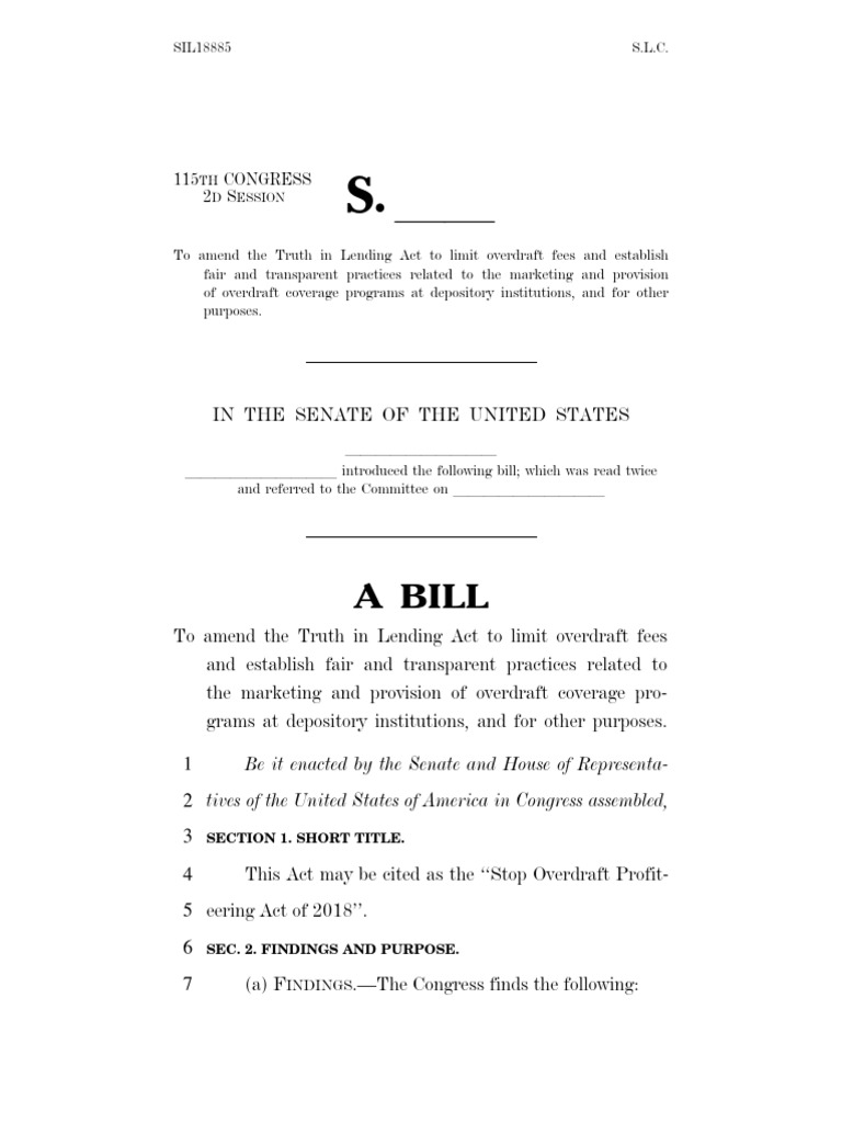 To amend the Truth in Lending Act to limit overdraft fees and establish fair and transparent practices related to the marketing and provision of overdraft coverage pro-grams at depository institutions, and for other purposes.