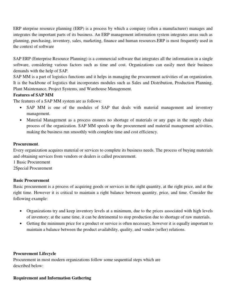 process of the organization. SAP MM speeds up the procurement and material management activities,