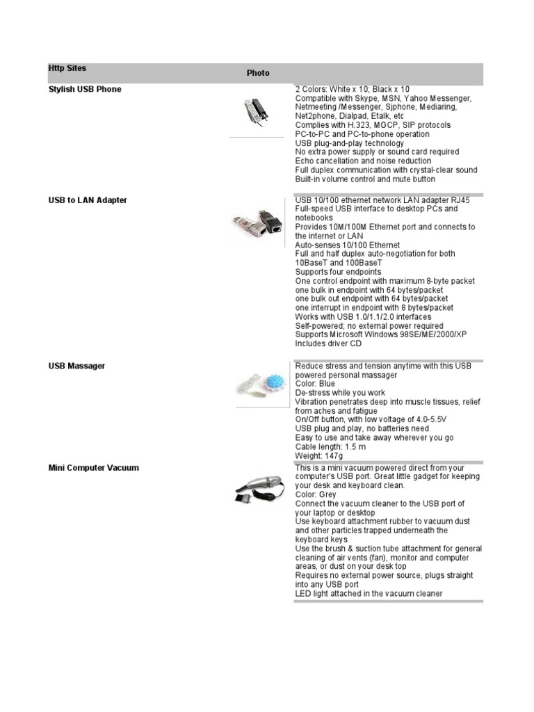 Stylish USB Phone 2 Colors: White x 10; Black x 10