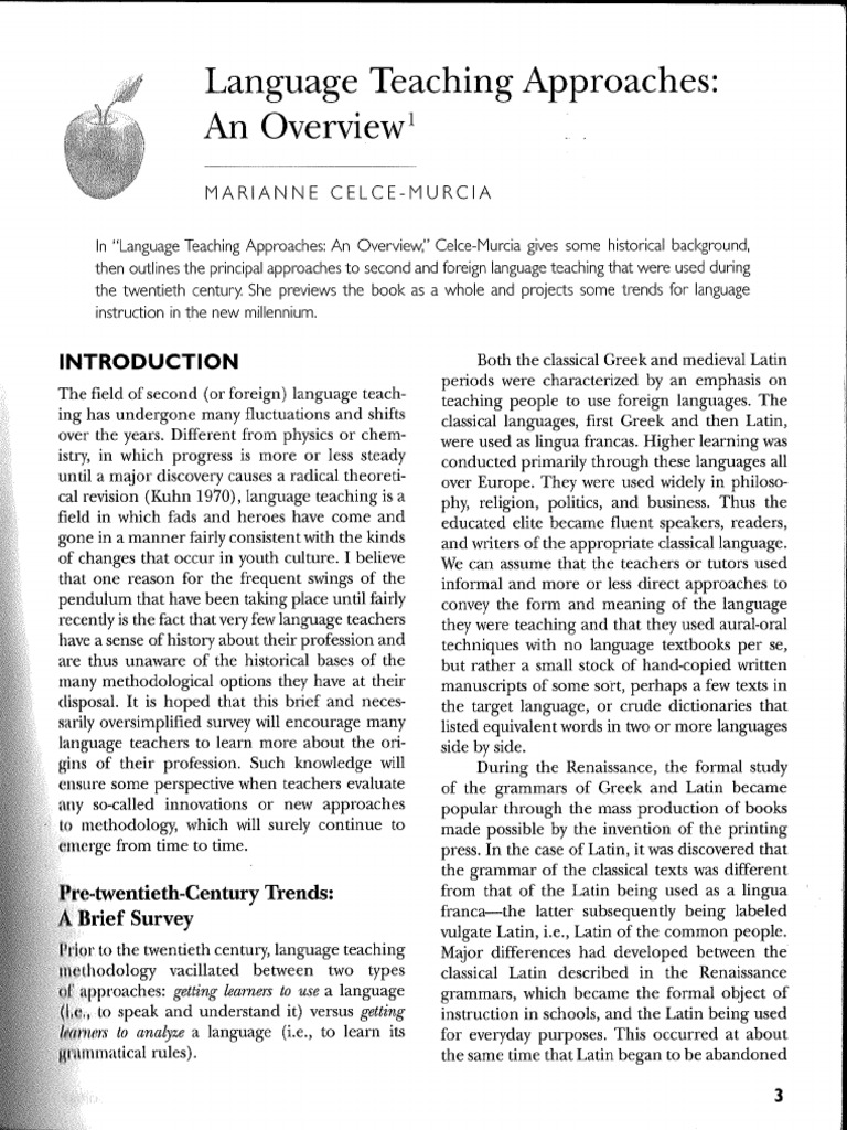 In “Language Teaching Approaches: An Overview,” Celce-Murcia gives some historical background,