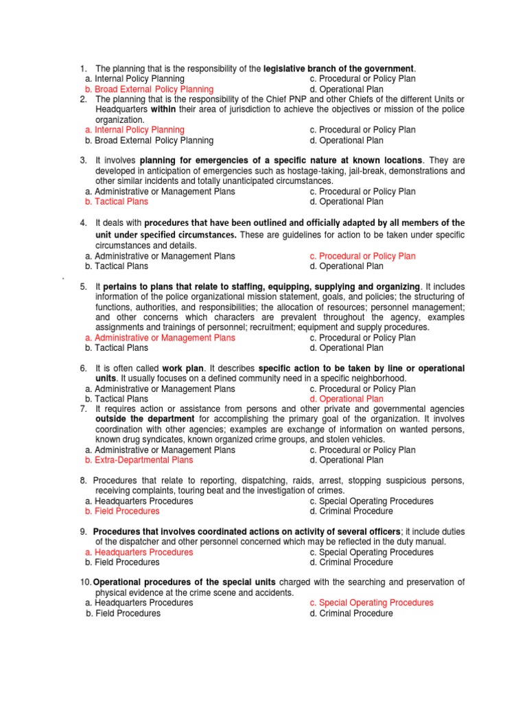 2. The planning that is the responsibility of the Chief PNP and other Chiefs of the different Units or