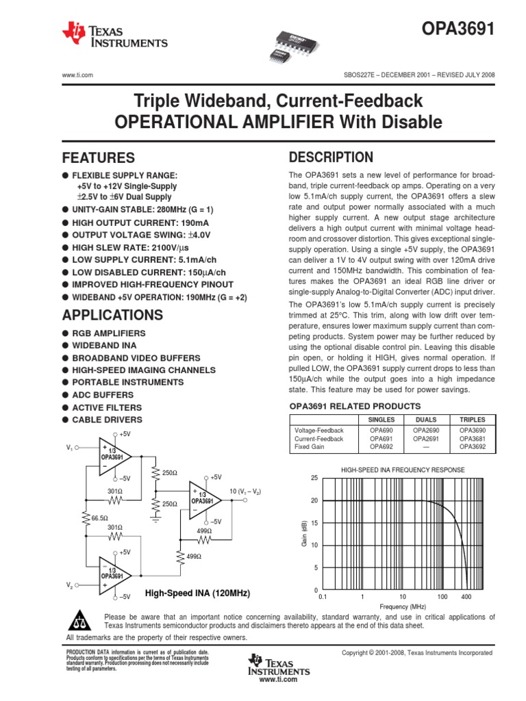 OPA3691 SSOP-16 Surface-Mount DBQ –40°C to +85°C OPA3691 OPA3691IDBQT Tape and Reel, 250