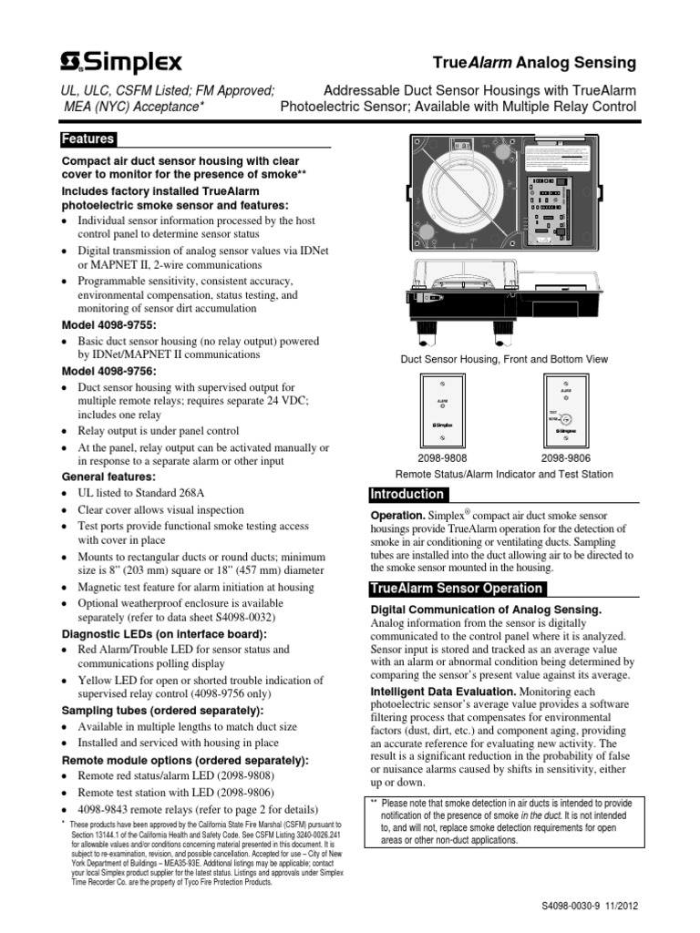 Detectors in Duct Applications, and Installation Instructions