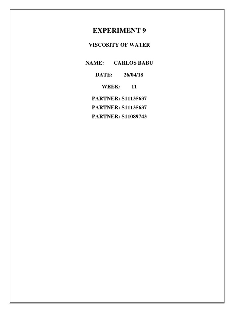 Therefore when looking at the formula above, it is possible to determine the viscosity 𝜂 of water
