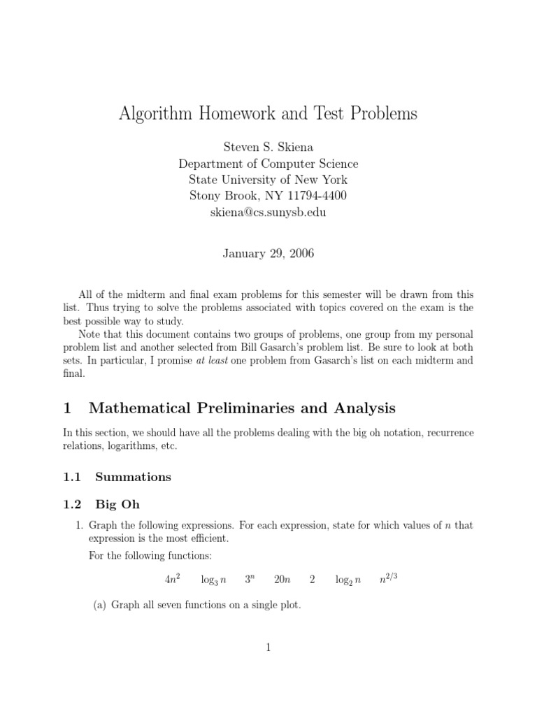 Algorithm Exam Study Problems Guide