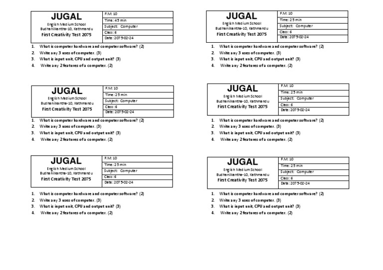First Creativity Test 2075 Class: 6 First Creativity Test 2075