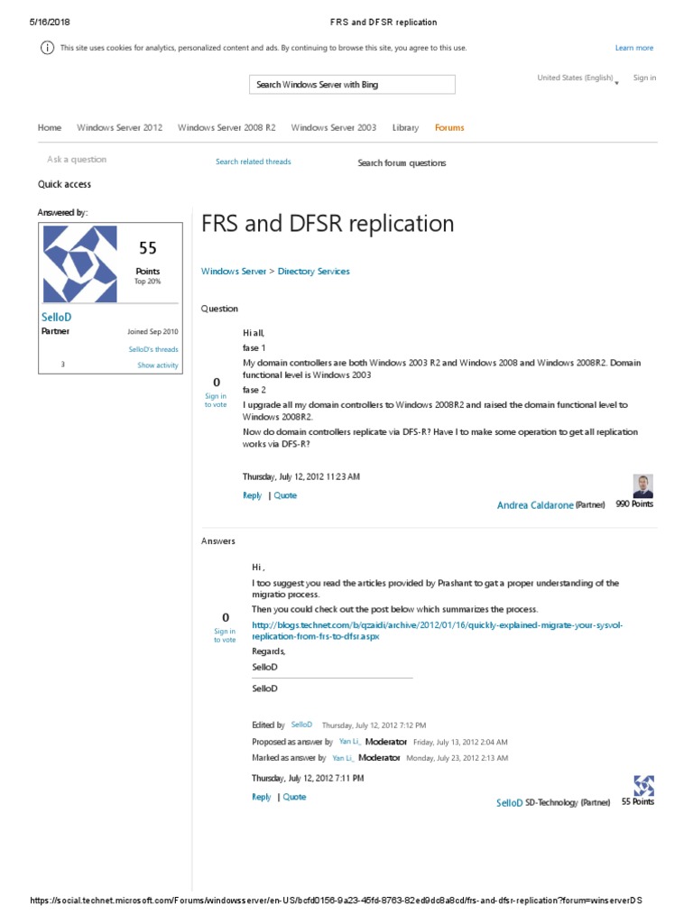 Server 2008 "DFSR is used to replicate the contents of the sysvol folder." I raised my two servers to