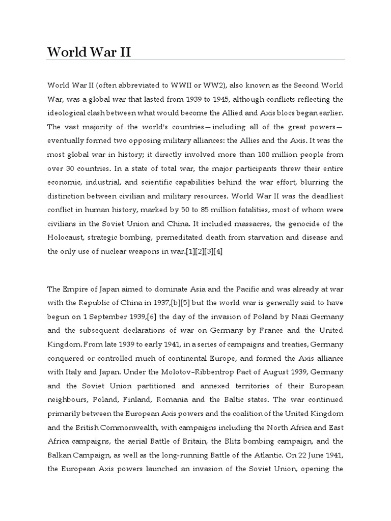 World War II (often abbreviated to WWII or WW2), also known as the Second World