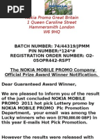 Congratulations YOU'VE Won. You're a Winner in our August �1000 Prize Draw. Call