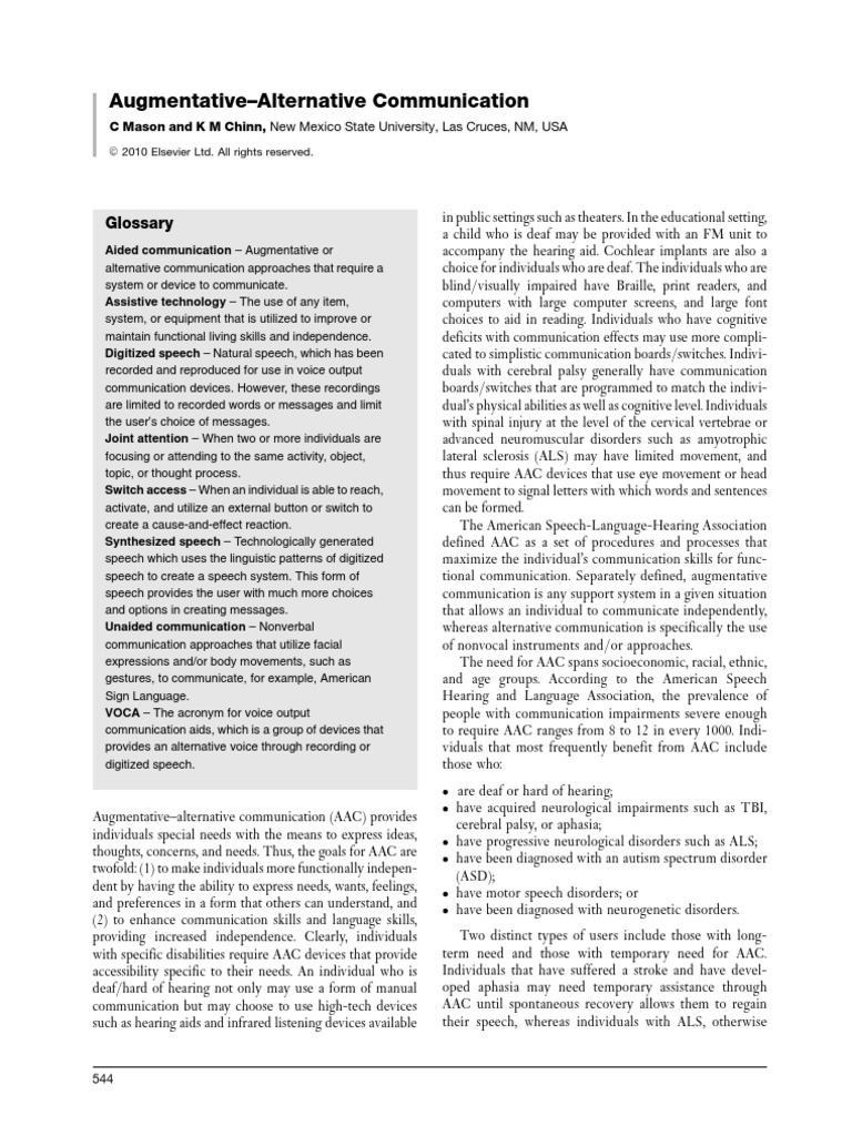 aac.htm (accessed August 2009). Proctor, L. A. and Oswalt, J. (2008). Augmentative and alternative