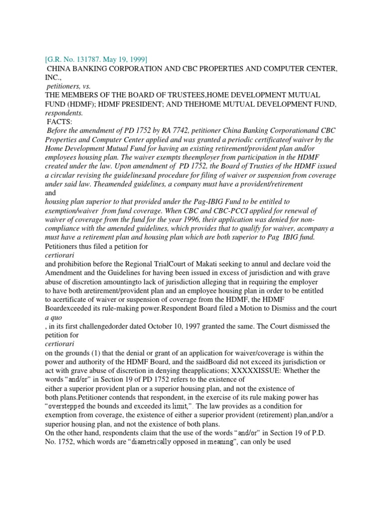 created under the law. Upon amendment of PD 1752, the Board of Trusties of the HDMF issued