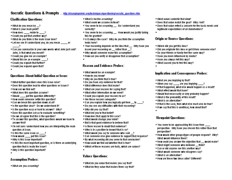 Socratic Questions & Prompts … http://changingminds.org/techniques/questioning/socratic_questions.