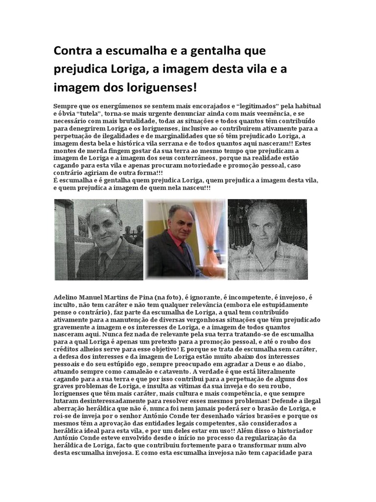 seu desprezo pela imagem de Loriga e dos loriguenses, e a sua ignorância.