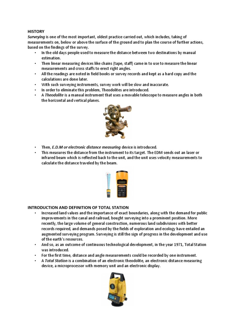 INTRODUCTION AND DEFINITION OF TOTAL STATION