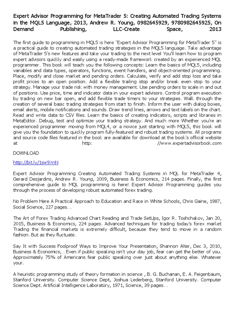 MetaTrader 5: Creating Automated Trading Systems in the MQL5 Language Andrew R. Young