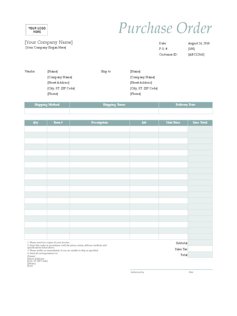 [Your Company Slogan Here] P.O. #: [100]