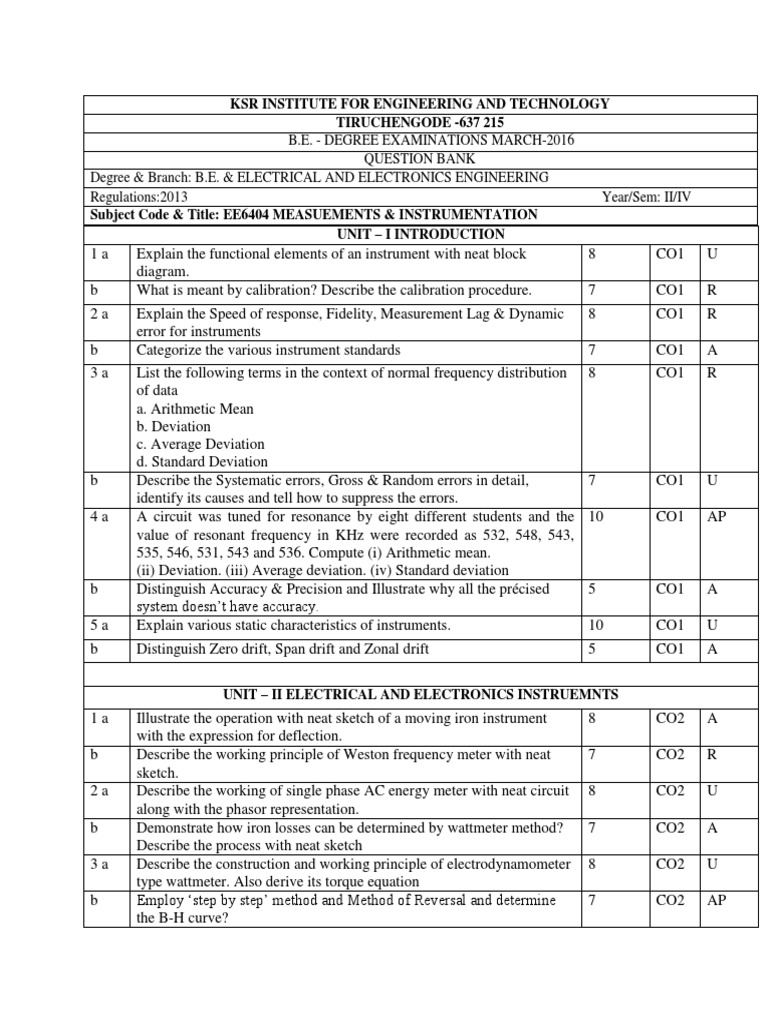 Subject Code & Title: EE6404 MEASUEMENTS & INSTRUMENTATION