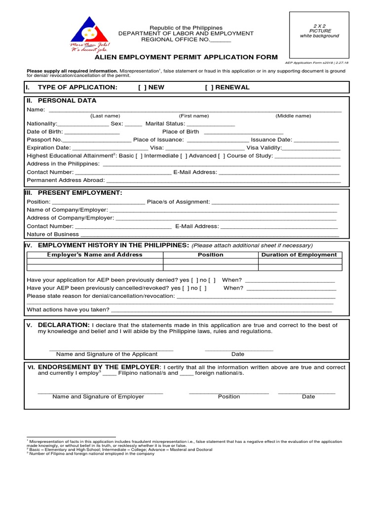 ALIEN EMPLOYMENT PERMIT APPLICATION FORM