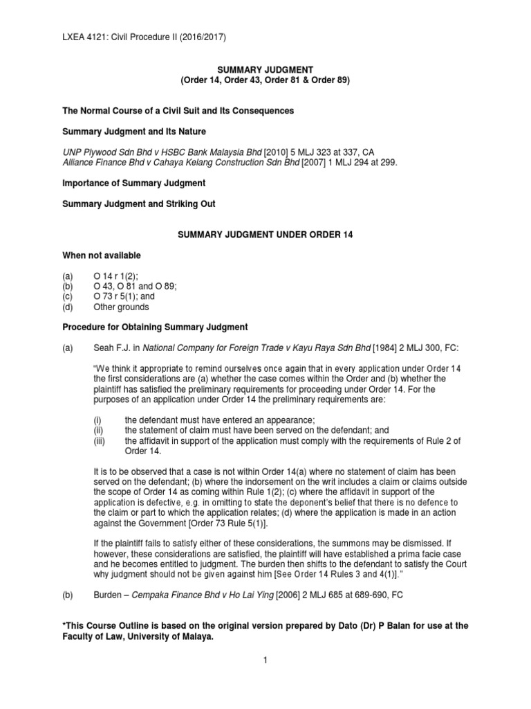 (l) For the present position: See Order 14A and cases such as Petroliam Nasional Berhad vs