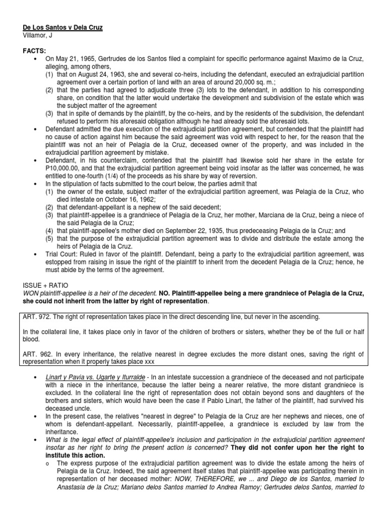 On May 21, 1965, Gertrudes de los Santos filed a complaint for specific performance against Maximo de la Cruz,