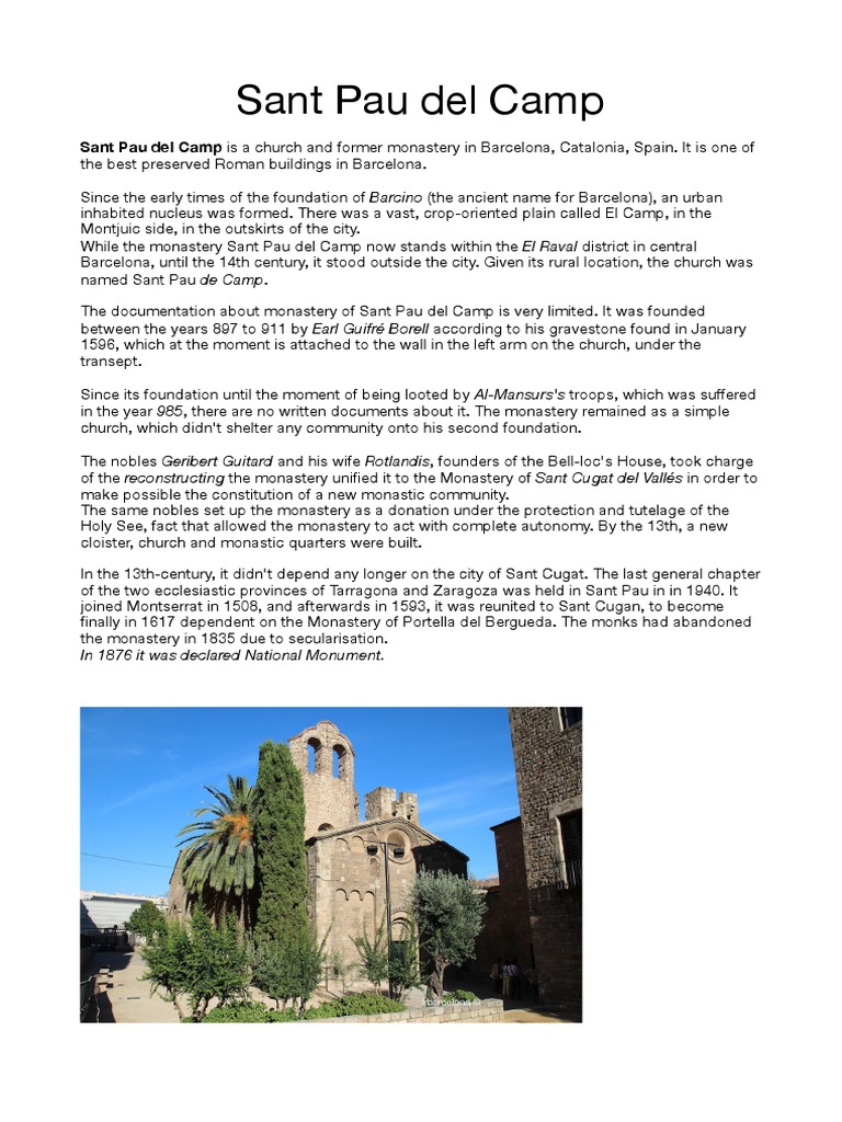 The documentation about monastery of Sant Pau del Camp is very limited. It was founded