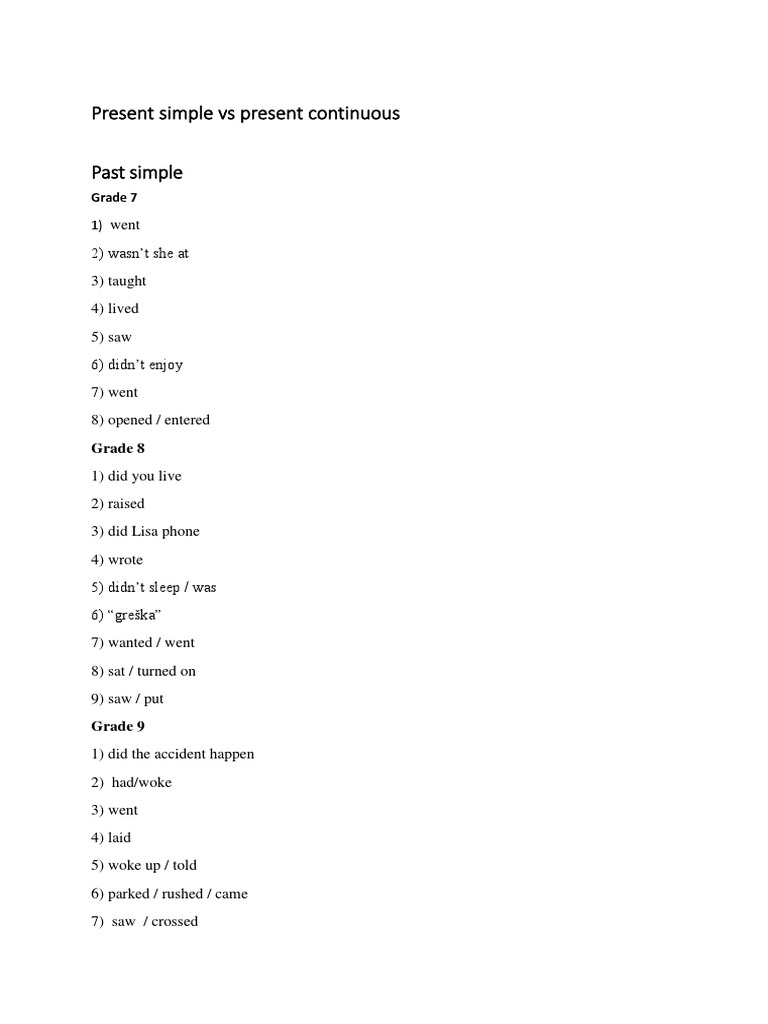 Sentences emphasising the distinction between the use of past simple and past continuous.