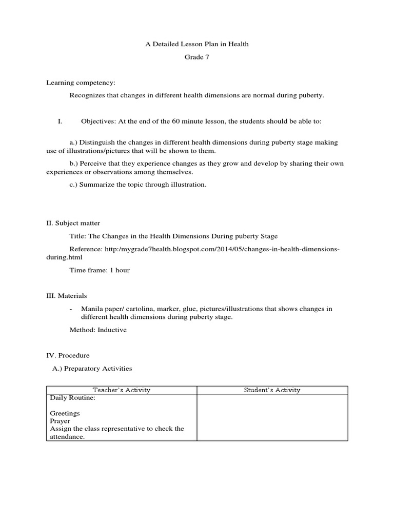 A Detailed Lesson Plan in Health
