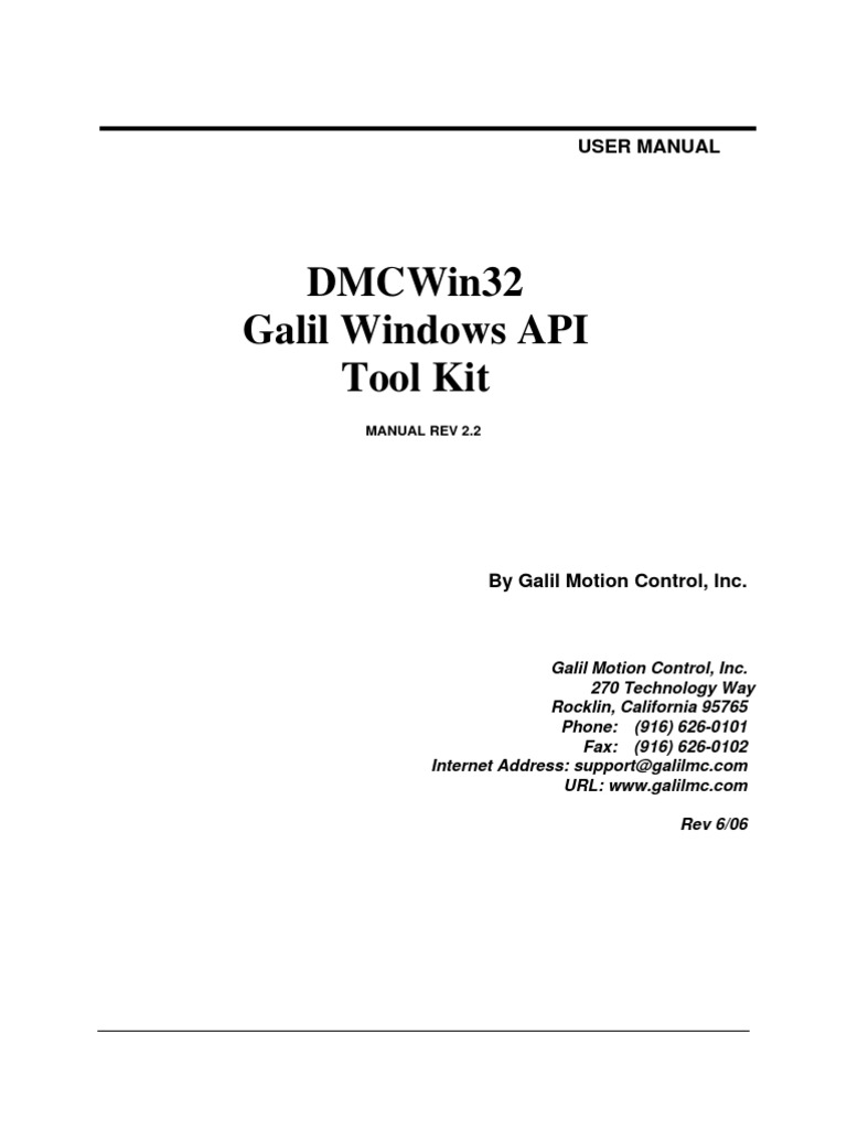 This manual describes DMCWin32: the Galil Windows API (Application Programming Interface). It include