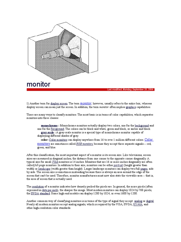 called full-page monitors. In addition to their size, monitors can be either portrait (height greater than