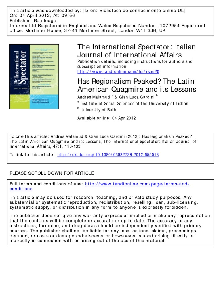 To cite this article: Andrés Malamud & Gian Luca Gardini (2012): Has Regionalism Peaked?