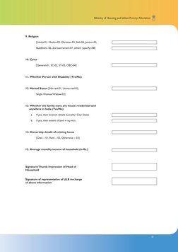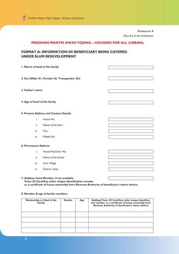 "Note: # Same format shal be used for ineligible sum dwellers and beneficiary of those sums, which have nat Been cansidered fr slum