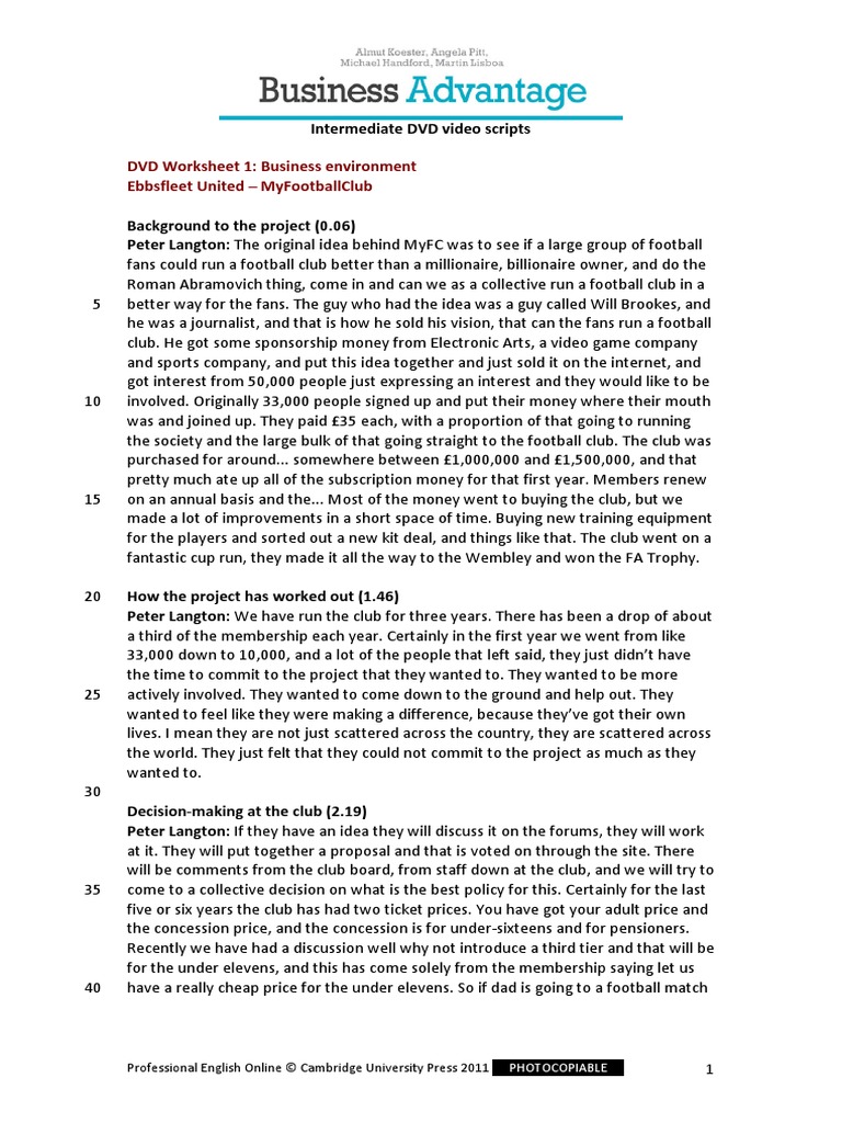 Professional English Online © Cambridge University Press 2011 …..PHOTOCOPIABLE….. 1