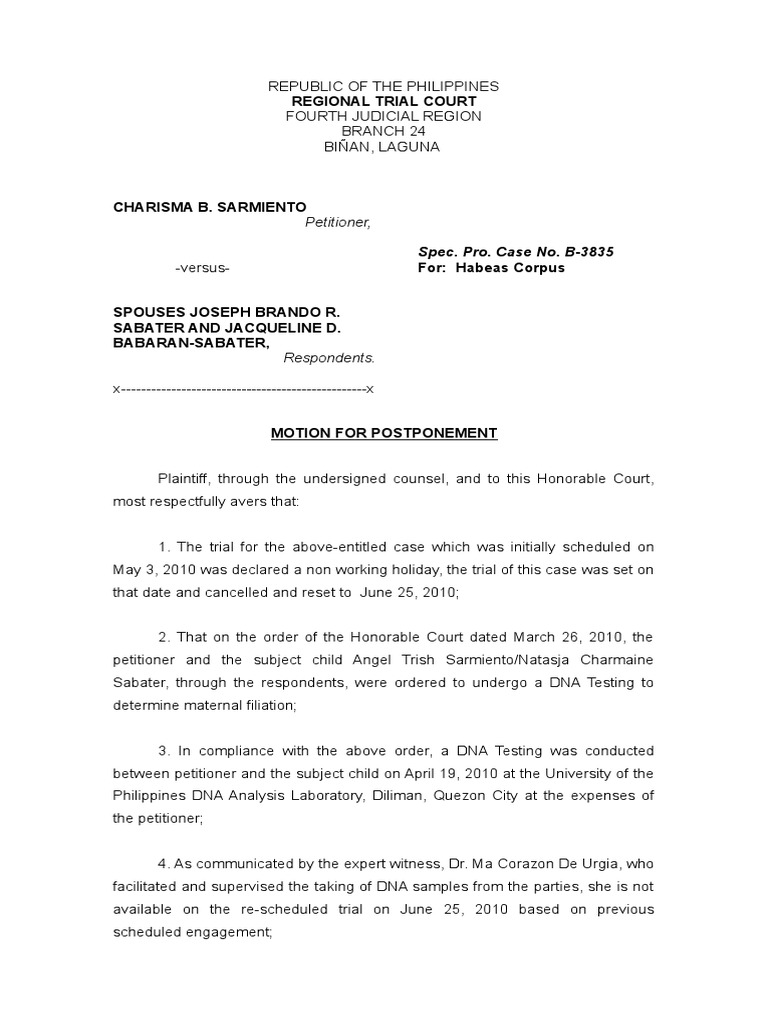 Sabater, through the respondents, were ordered to undergo a DNA Testing to