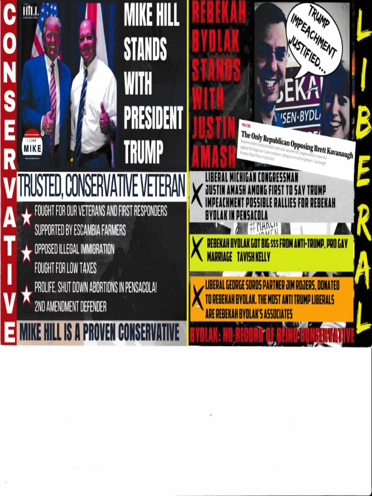 Campaign ads sent by Mike Hill and the Suncoast Better Government Committee during the 2018 Republican primary for Florida House District 1.