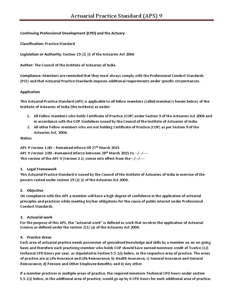 This Actuarial Practice Standard (APS) is applicable to all fellow members (called member/s herein below) of the
