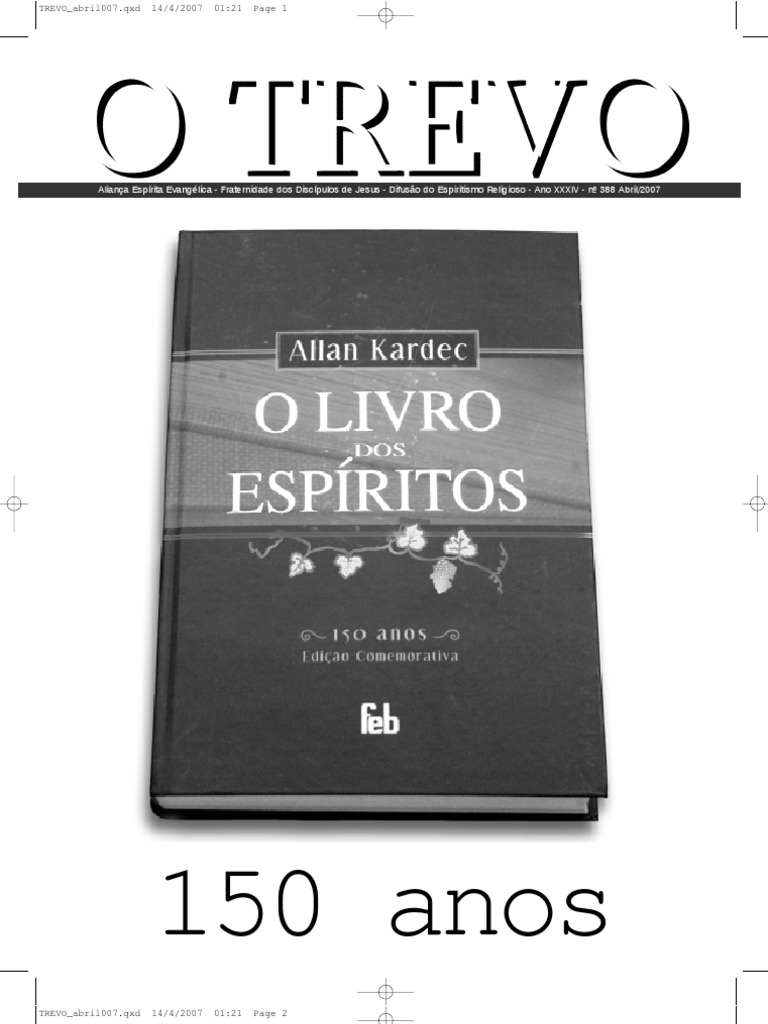 Aliança Espírita Evangélica - Fraternidade dos Discípulos de Jesus - Difusão do Espiritismo Religioso - Ano XXXIV - nº 388 Abril/2007