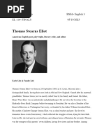 Thomas Stearns Eliot was born in St. Louis, Missouri, on September 26, 1888. He lived in St.
